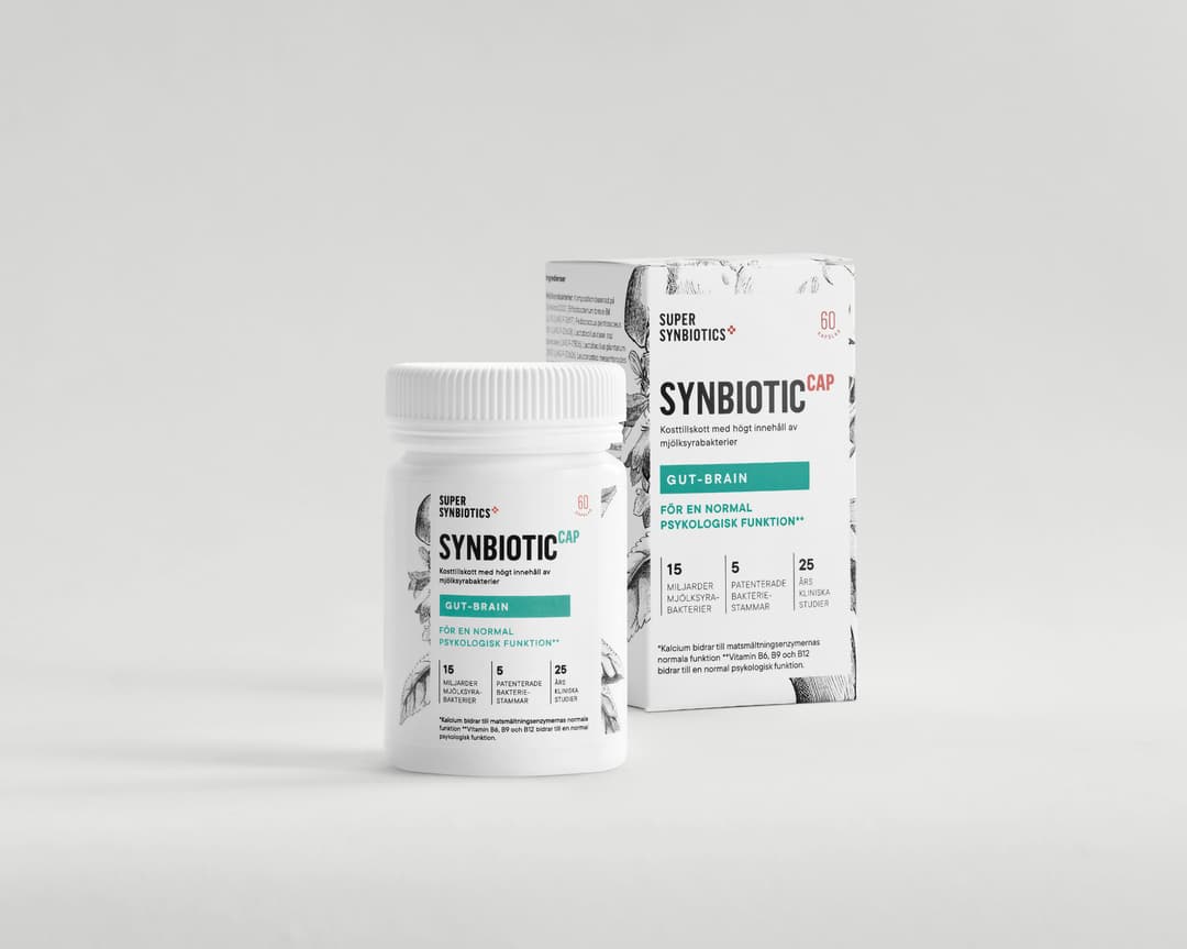 Super Synbiotics Gut-Brain-produkter består av synbiotika, framtaget för att stötta både magens och hjärnans funktion.